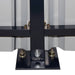 The large double front swinging door and a convenient side entry door allow for easy access, accommodating various equipment and vehicles. The sloped, vertical gable roof design and four air vents enhance stability and ventilation. Pre-drilled footplates with included sleeve anchor bolts make installation straightforward on a concrete base or equivalent.
